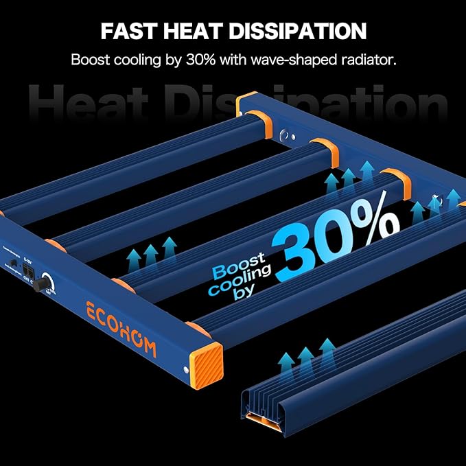 - 【Efficient Heat Dissipation Design】 The grow light design and aluminum heat sink on the back facilitate air circulation and rapid heat dissipation. Reduce ambient heat in the growing space. The foldable design of our grow light no need to assemble. Save your time and space during installation, storage, transportation.