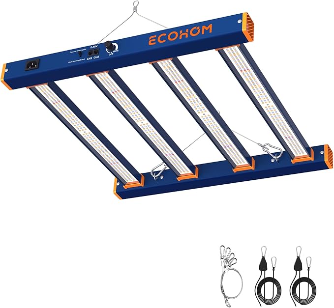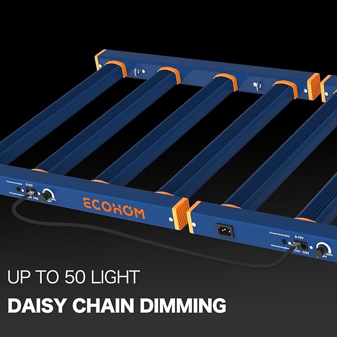 - 【Dimmable & Daisy Chain Design】 Easy dimming, ranging from 0-100% dimming to meet the needs of Plant Growth. giving you full control over the intensity of light for different stages of plant growth. the daisy chain function supports growers to connect up to 25 grow lights to control them dimming at the same time. no need to buy controllers, just use the daisy chain to link all the lights, then dimmable one light , all lights follow. Unfold to use, flexibility for growers in any setting.