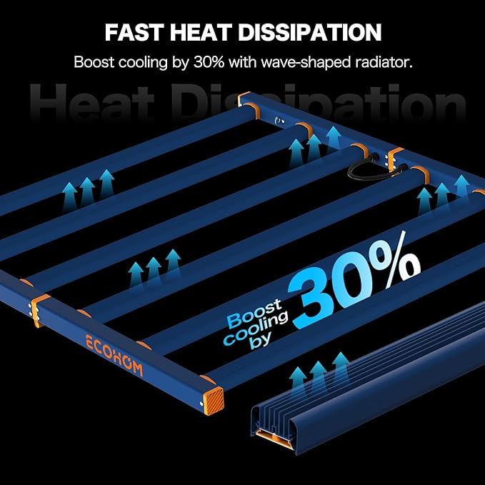 - 【Efficient Heat Dissipation Design】The grow light design and aluminum heat sink on the back facilitate air circulation and rapid heat dissipation. Reduce ambient heat in the growing space. The foldable design of our grow light no need to assemble. Save your time and space during installation, storage, transportation.