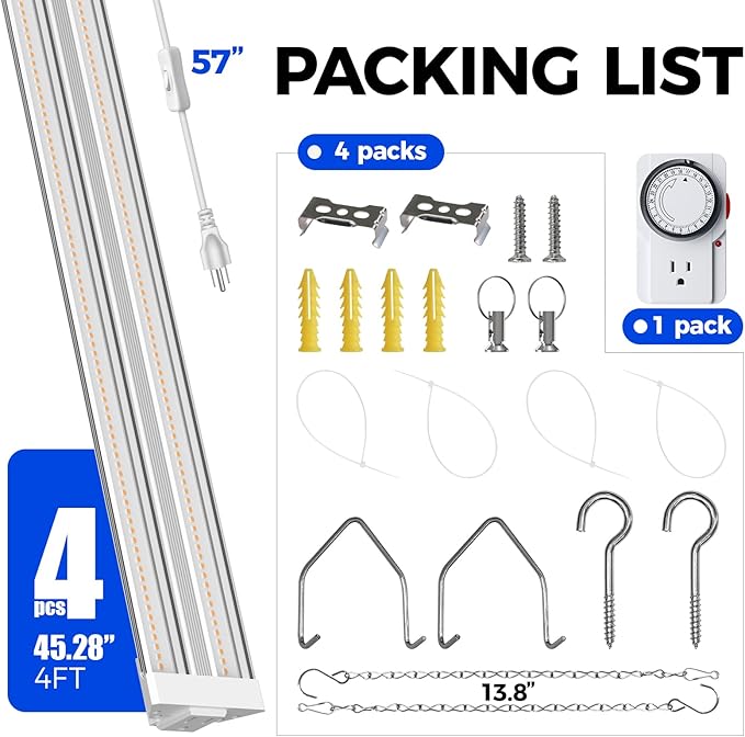 - Precision Timer Control for Effortless Operation: Our plant lights for indoor growing is equipped with a mechanical timer for precise lighting when you're away. Set it once for a 24-hour cycle with on/off intervals as short as 15 minutes. After setting, your plants are automatically taken care of daily, without the need for manual adjustments