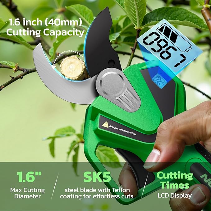 - 【1.6" Max Cutting Capacity】Cut branches up to 1.6 inches thick with the durable SK5 steel blade and non-stick Teflon coating. Perfect for fruit trees, landscaping, and seasonal trimming.