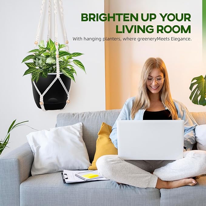 2-Pack 7.1-Inch Self-Watering Hanging Planters for Indoor & Outdoor Plants,34Inch Macrame Hanger Plant Pots Indoor with Drainage,Small Hanging Planters & Baskets,With Two Sets of Hooks(Pure black)
