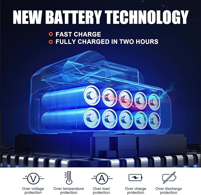 - ✁ Multiple Safety Protection - Our battery chainsaw has multiple safety measures to ensure safe and reliable use. Security Lock to prevent accidental start to protect your families. A 100° rotatable top protective baffle prevents the sawdust from splashing during work.