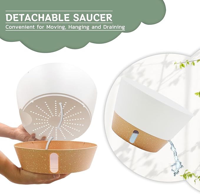 - 【Ventilation & Drainage】The easy-to-remove tray design simplifies cleaning and maintenance. The tray stores water for 7 days or more, and the mesh ventilation holes in the bottom of the self-watering pot ensure optimal aeration, providing plenty of breathing space for your plants