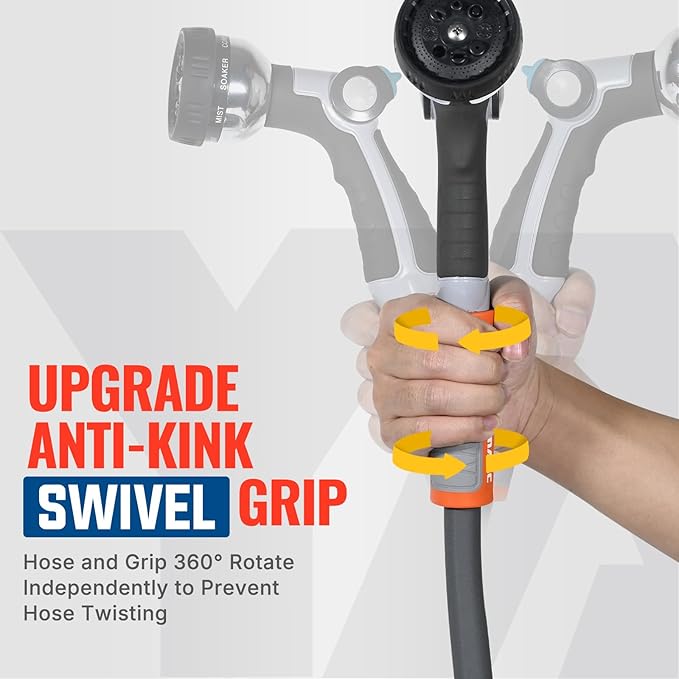 - Industry Swivel Handle: The hose features an industrial technology upgraded 360-degree swivel fitting, enhancing your experience of kink resistance. The ergonomic design of the swivel handle makes it easier to connect to the faucet.