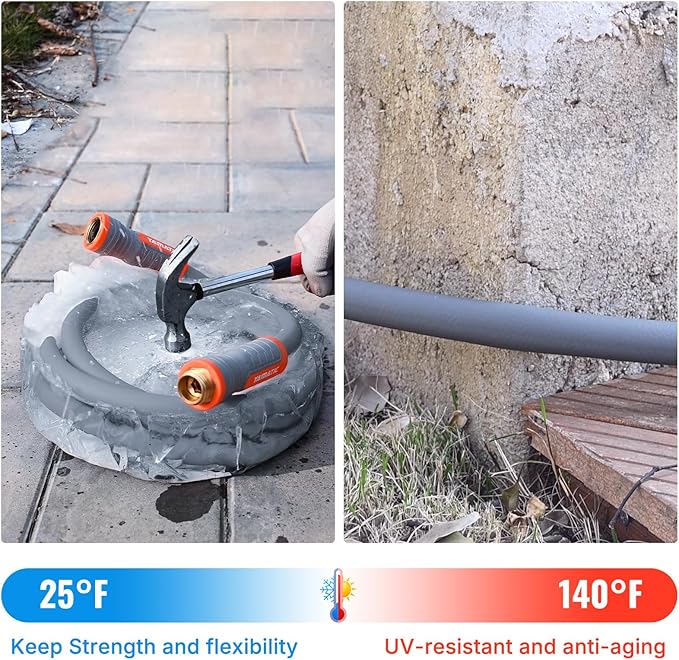 - Sturdy and Durable - Integrated with industry engineering, stand up to Burst 600 PSI / Work 200 PSI, top-level strengthen hose than similar. Come with heavy-duty solid brass 3/4" GHT one female end and one male end, support you widely work from home garden to commercial work for long years.