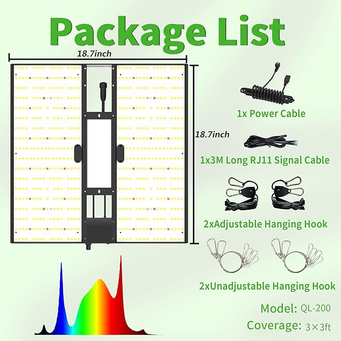 - 【What do you get?】1xLED Grow Light with Driver,1x3M Long RJ11 Signal Cable,2xAdjustable Hanging Kit,2xNon-Adjustable Hanging Kit.We provide 3 years warranty.