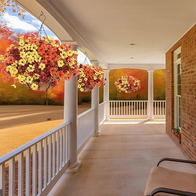 - Charming Fall Hanging Basket: Add a warm seasonal touch with this lovely faux fall flowers; Simple and realistic-looking, it brings a cozy autumn feel to any corner of your home or outdoor area