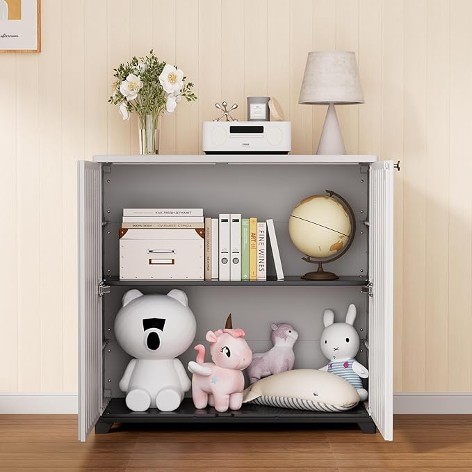 HOMSPARK Indoor/Outdoor Storage Cabinet with Doors, 34”x15”x34” HDPE Plastic Storage Box for Bedroom, Bathroom, Living Room, Balcony, Multi-Purpose for Daily Tools, White