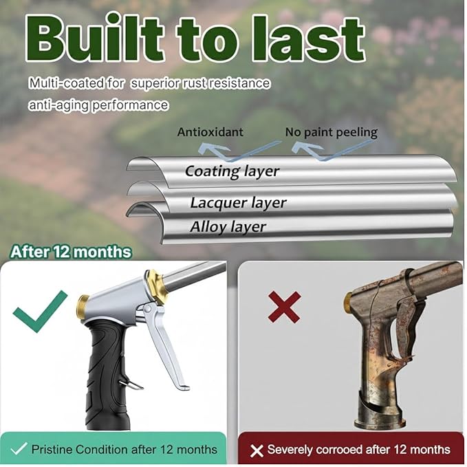 - HIGH-PRESSURE PERFORMANCE: Engineered for powerful water flow, this heavy-duty garden hose nozzle delivers exceptional pressure for efficient gardening, car washing, patio cleaning, and pet showers