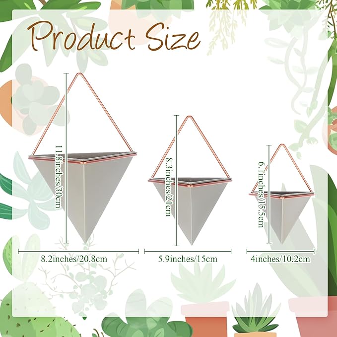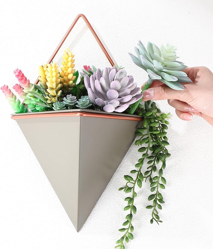 - Package Include: you will receive 3 pieces of triangular hanging planters in large, medium and small, and 12 mini artificial succulents of different sizes, providing a variety of sizes, types and colors for your flower arrangement projects, hanging planter adds life and style to any room