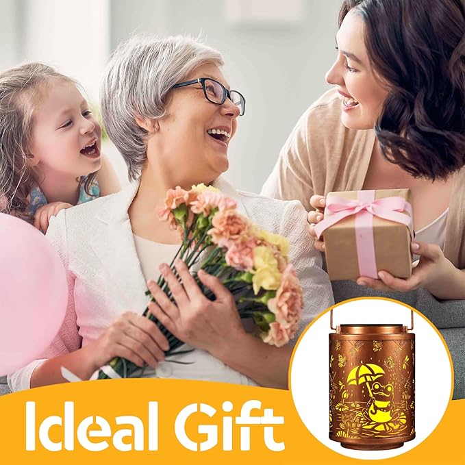 Solar Lanterns Garden Decor Birthday Gifts for Women Mon Grandma Metal Hanging Solar Lights Waterproof Outdoor Decoration for Outside LED Lanterns for Yard Patio Lawn (Frogs)