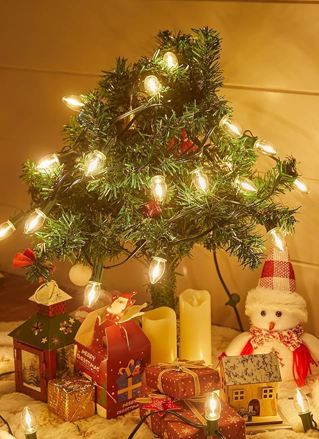 Brightown C7 Clear LED Christmas String Lights Outdoor, 100FT Connectable Vintage Hanging Lamps with 104 0.6W Bulbs(4 Spare) for Xmas Holiday Party Patio Roofline House Decor