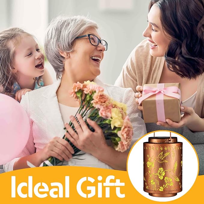 - Graceful Decorative Design:The retro appearance, with gold copper color and hollow out metal veneer, the outdoor lanterns casts bright and warm light in darkness, accompanied by gorgeous and graceful hummingbird patterns, adding a beautiful atmosphere to the surrounding environment.