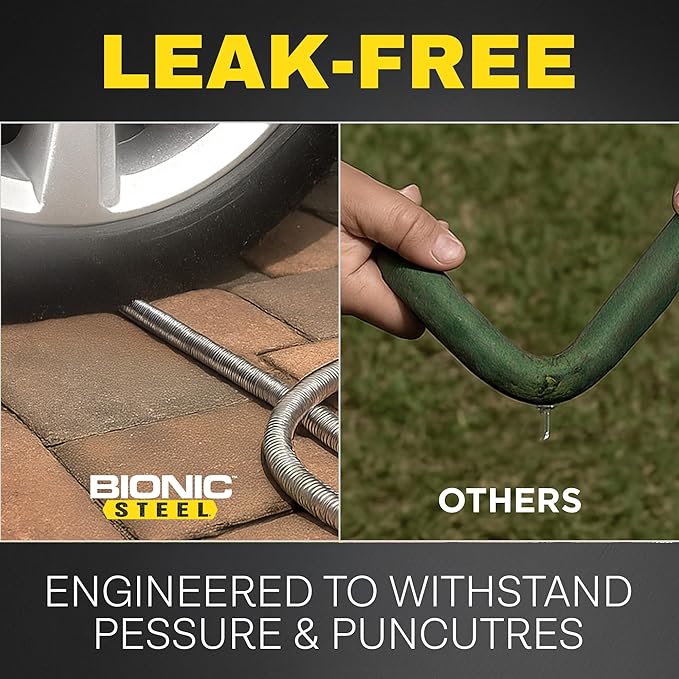 - NON-EXPANDABLE- Bionic Steel Pro Hose does not expand or retract guaranteeing a steady and uninterrupted flow of water.