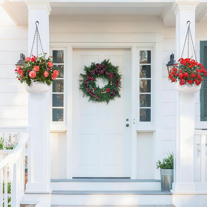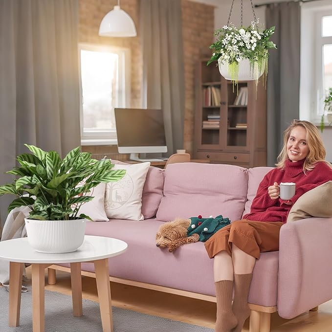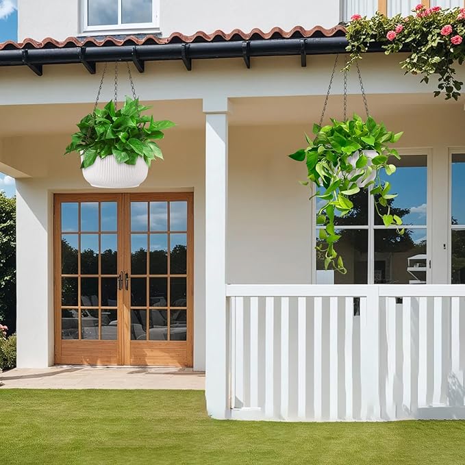 Set of 2 White 11.2 Inch Hanging Planters for Indoor Outdoor Plants, Self Watering Hanging Flower Pots with Drainage Hole & Plug