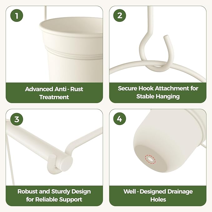 - Modern Decorative Style – Sleek minimalist look that complements any decor. Perfect as wall planters for indoor plants or as a hanging plant stand to bring fresh greenery into your living space.