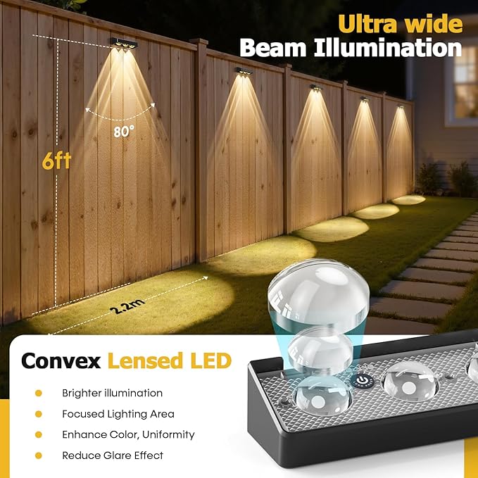 - 【Portable Size & Wide Applications】Installation is a breeze with the included screws. Choose a sunny location, and these solar step lights for outside can be mounted in minutes. These fence lights solar powered are ideal for fence, deck, patio, wall, stair, and more. They also make great decorations for parties and holidays, offering both practicality and charm. Whether you're lighting up your yard or adding a festive touch, these versatile fence decorations outdoor fit every occasion.