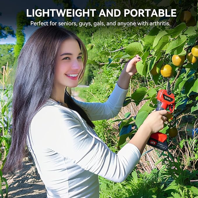 - Long-Lasting Battery Life & Cordless Convenience:Comes with 2pcs 21V 2000mAh rechargeable lithium-ion batteries, providing 4-6 hours of non-stop use on a full charge. The cordless design and lightweight 3.55lb body make it easy to carry around your garden, orchard, or flower bed, even for women to operate effortlessly.