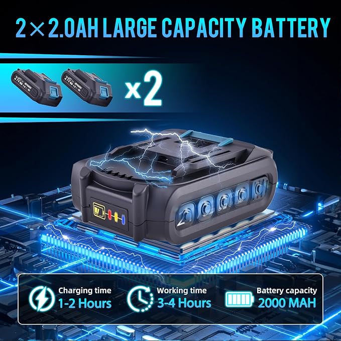 - 2 x 2.0Ah battery extended operating time -RYOJEGK power shears include two 2.0Ah lithium-ion batteries.Each battery adopts a high-capacity lithium-ion battery and upgrades to a large-sized battery chip,making the battery discharge more stable.It automatically controls the power output and maximizes the battery's endurance,making it highly suitable for large-scale work.The LCD screen displays real-time battery power and cut-off count to prevent power shortage during the mission