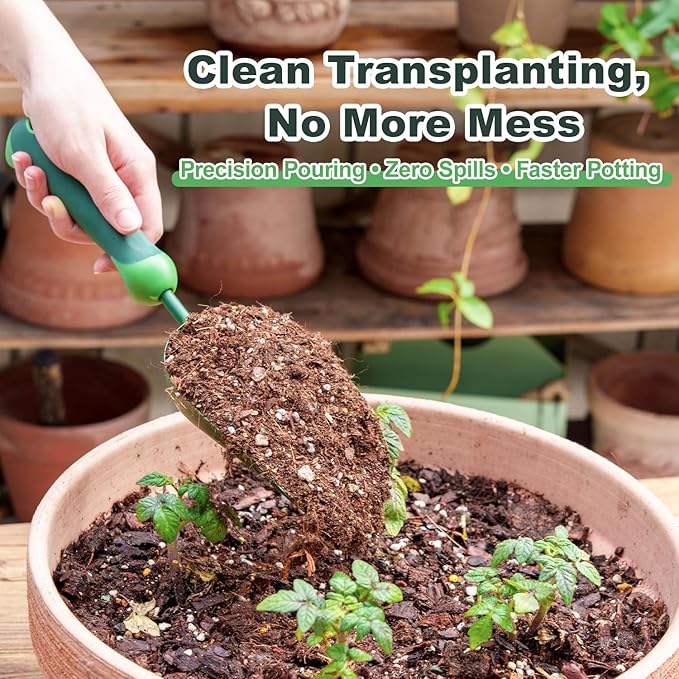 - TRUE MULTI-TASKER FOR GARDEN & HOME – From digging and loosening compacted soil to transplanting seedlings, mixing compost, or topping up planters—it handles every gardening task with ease. Bonus: use it in the kitchen or garage to scoop pet food, dry goods, ice, or granular fertilizer. One tool, endless uses.