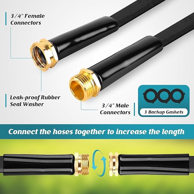 - High Pressure and Versatile Temperature Range:This 100 ft garden hose can withstand up to 600 PSI burst pressure, ensuring dependable performance even in challenging conditions. Its broad temperature range (-40℉to 150℉) allows it to function reliably throughout the year, adapting to various weather conditions while maintaining effectiveness.
