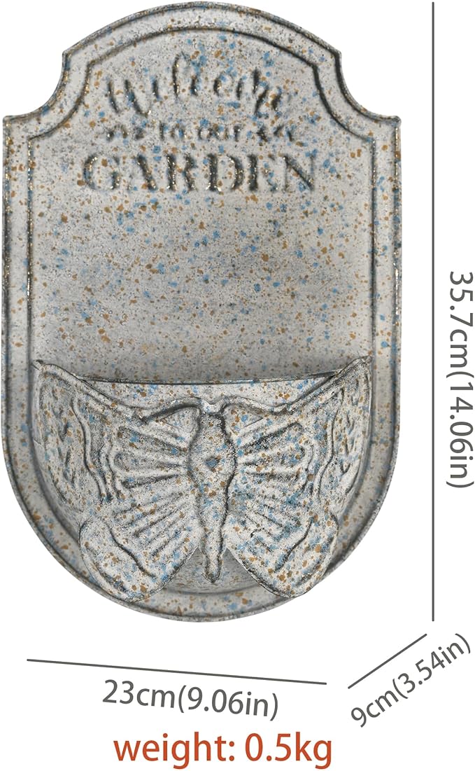 - 【Charming Vintage Garden Design】: Features a "Welcome to our GARDEN" embossed message and a delicate butterfly relief pattern. The distressed, speckled finish gives it a nostalgic, rustic look that adds a warm, inviting touch to any garden, patio, or indoor space.
