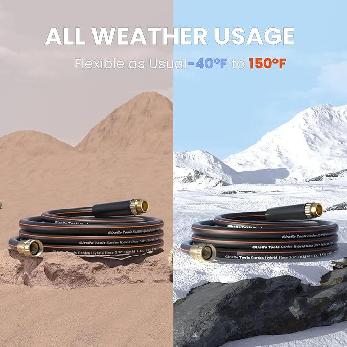- All-weather Flexible – Under residential water pressure, the hose works at 150 PSI. Thanks to the rubber component, it remains flexible in extreme temperatures—easy to coil and uncoil even in cold or hot weather.