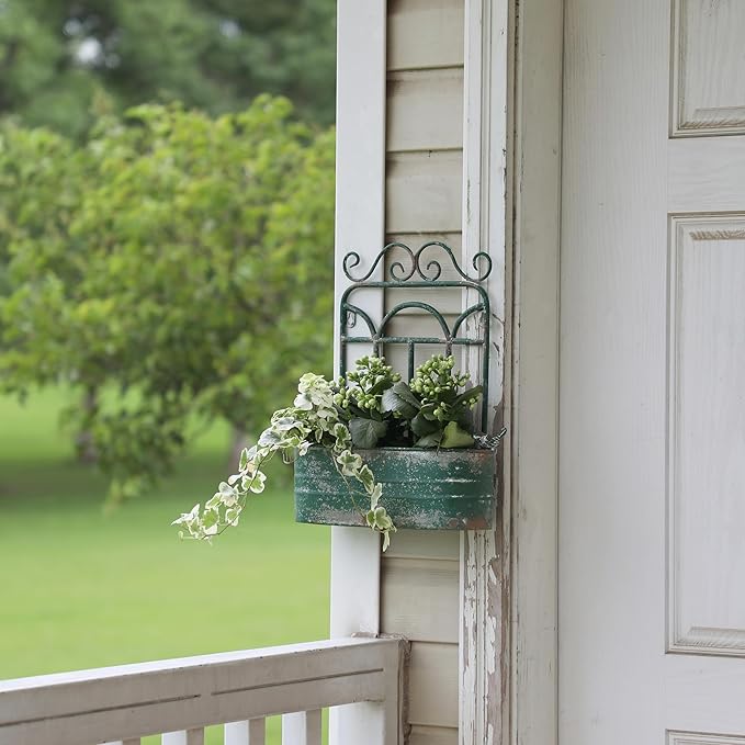 Vintage Rustic Wall Planter Distressed Green Decor Metal Hanging Plant Basket Shabby Iron Wall Mounted Flower Holder Pot Stand for Indoor Outdoor Home Balcony Patio Farmhouse Garden Decorative