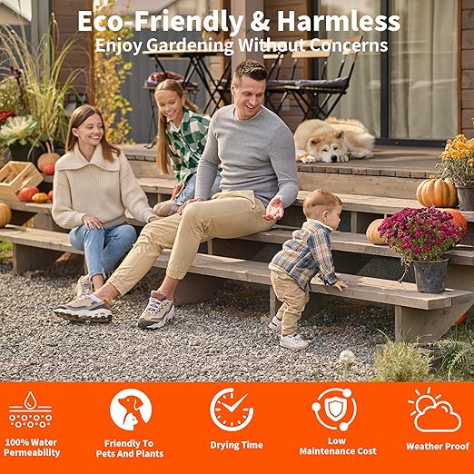 - Versatile Use & Eco-Conscious Design: The landscape glue powerfully holds small gravel, pebbles, mulch, wood chips, sand, hay and straw. The gravel binder is water permeable, non-toxic, safe for pet paws, and its robust water-based formula is plant-safe. But still allows water to pass through, protecting your garden and plants. It enhances the resistance of the organic layer to severe weather and reduces erosion.