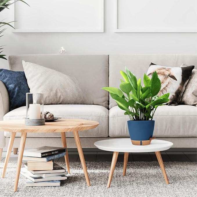 montresor 2-Pack of 8inch Self Watering Pots Blue Sturdy Plastic Flower Pot for Indoor Plants with Cotton Rope and Visual Water Storage Tray, Plastic Pots for Plants