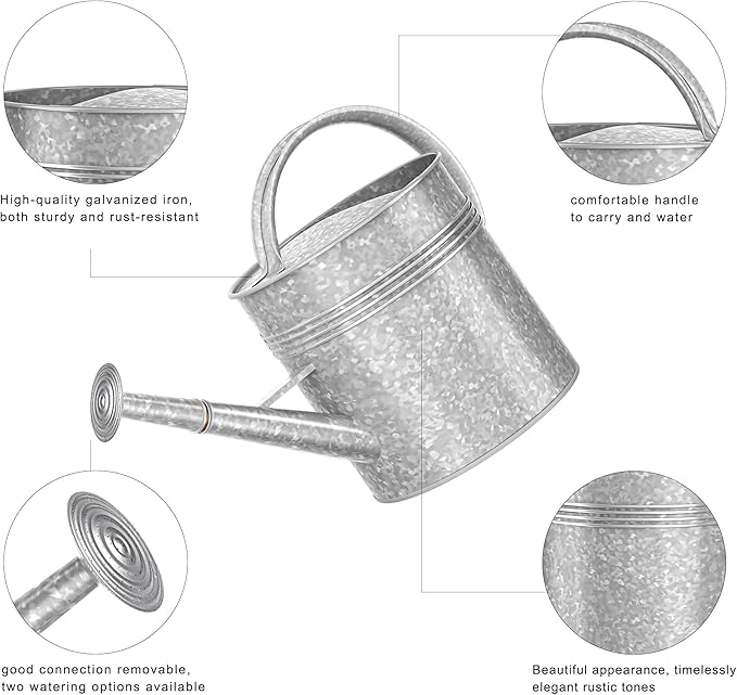 - Multi-functional Design Design: Watering can with a detachable shower nozzle, gives you the option for a gentle shower or steady stream, it pours smoothly with no drips or mess. Ergonomic construction, with a comfortable handle that makes plant watering effortlessly.