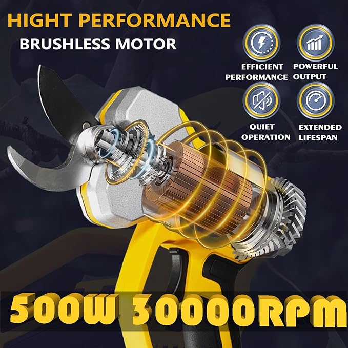 - 【Powerful Kinetic Energy Brushless Motor】Pruning shears heavy duty Brushless motor with 30000 rpm. Compared with the pure copper motor, the service life of the brushless motor is increased by 500%, the output power is increased by 100%, the wear is reduced by 150% and the energy consumption is reduced by 60%. It provides greater kinetic energy with lower energy consumption, making it easy for you to work every time.