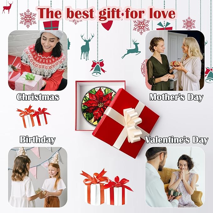 Stained Glass Window Hanging - Poinsettia Suncatcher for Door Garden Home Decor Birth Flower Sun Catcher Birthday Mother's Day for Lovers Friend Women Mom Nana 11.8 in