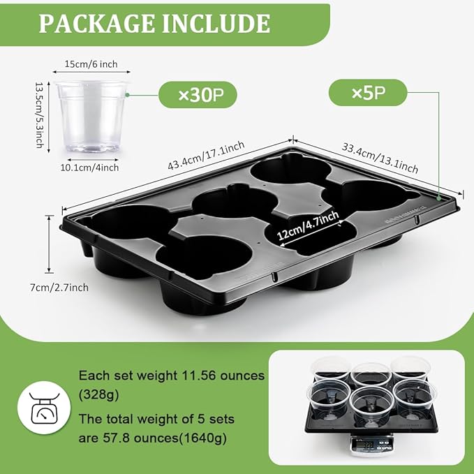- Sturdy Thickened Plastic Material: You will get 30 pack 6 inch clear plant pots with 6 cell carrying trays 5 pack. Which is make of sturdy and durabe plastic, have strong load-bearing capacity, not easily damaged, enough to last use for a several seasons. And 6 inch pot tray can works well for starting plants and seeds. Nursery pot tray sets are a fantastic addition to meet your gardening needs.