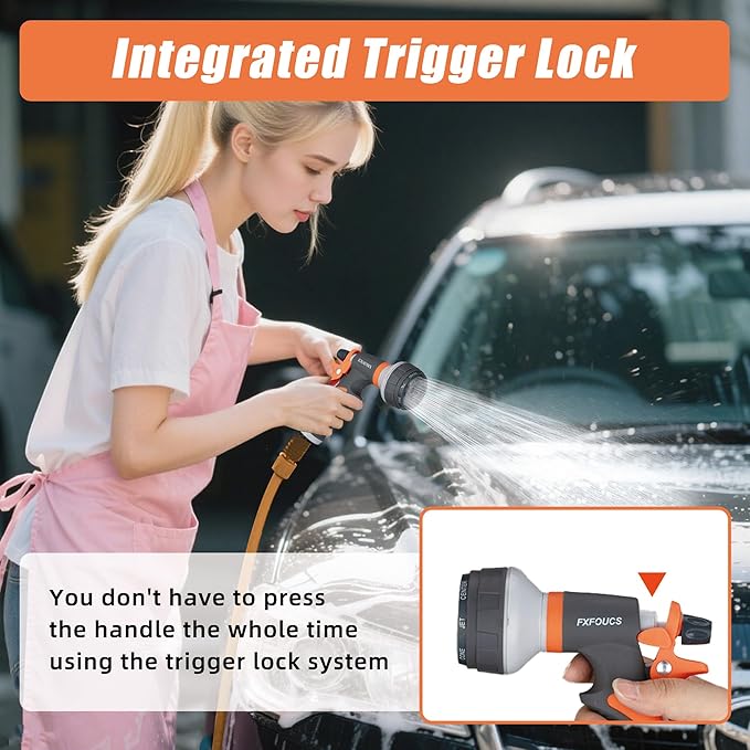 - This high-quality garden hose nozzle is built to last, delivering exceptional durability and performance. Its ergonomic, non-slip grip and effortless trigger make watering comfortable and efficient. The compact, easy-to-hold design reduces hand fatigue, allowing for extended use without strain—perfect for all your gardening, cleaning, and outdoor tasks