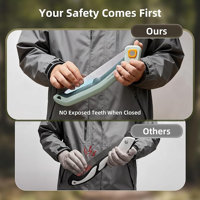 - 【Secure & Comfortable Hold】The ergonomic handle provides a comfortable, non-slip grip even during prolonged use. The shape of the camping saw fits naturally in your hand, reducing slippage and improving control