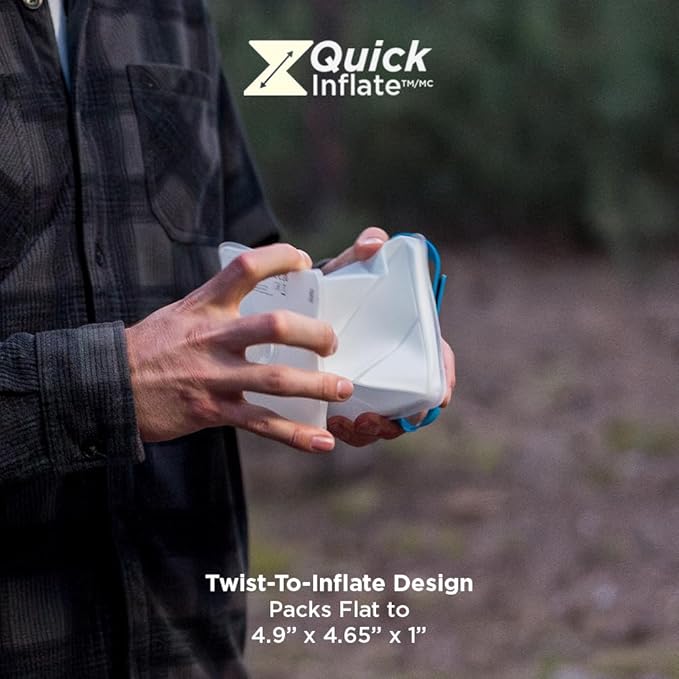 - ULTRA-PORTABLE, COMPACT & LIGHTWEIGHT - This camping lantern is inflatable and collapsible so you can take it on-the-go or store anywhere. Use the convenient carrying handle to daisy chain or carabiner to a backpack while hiking. Inflates to a 4.75" cube and packs down to 1" thick.