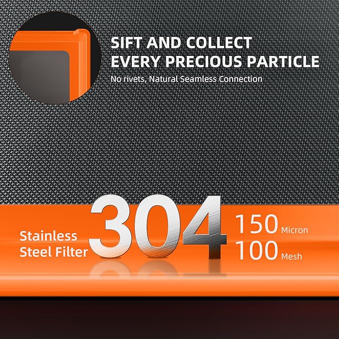 - PRECISION 150 MICRON SCREEN: Crafted with a 110 mesh (150 micron) screen for optimal sifting results. Designed without rivets or screws, ensuring smoother collection, less residue buildup, and easier cleaning