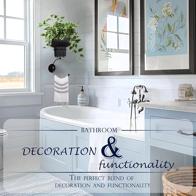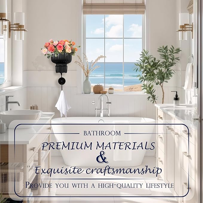 Hanging Plant Wall Vessel for Flowers with Hook, Indoor Outdoor Boho Bathroom Decor Wall Art Planter Mounted Vase (Black)