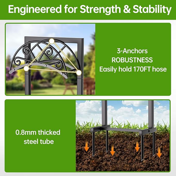 - 【New-style 4 Anchor Points】-The GREENER Freestanding Garden Hose holder features four anchor points that provide excellent support and ensure that this hose holder stands firmly. Plus, these 4 anchors are extremely sturdy and won't bend or break.