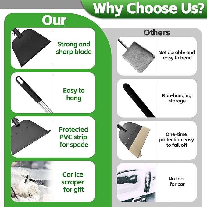 - Satisfaction Guaranteed: With our ice shovel, clearing ice and snow from driveways and sidewalks is easy and won't strain your back. We are committed to providing outstanding customer service. If you have any questions or concerns about our product, please don't hesitate to contact us.