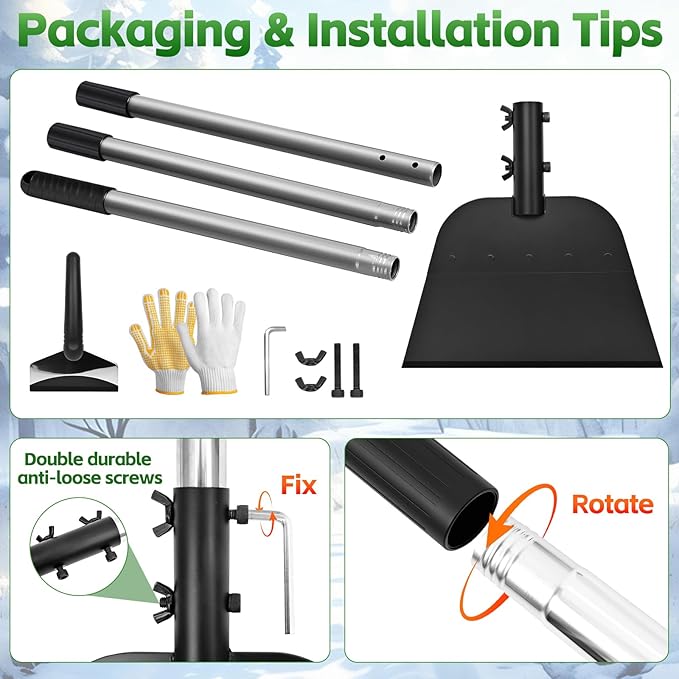 - Easy Install and Adjustable Height: Consisting of three metal handles and a shovel, our shovel is straightforward to assemble and a breeze to use. You can adjust the height to your preference, choosing either a three-section or two-section setup. Suitable for a wide range of users, it's easy to transport and can conveniently be stored in a car trunk. For a long-term use, please don't use the blade to pry anything.