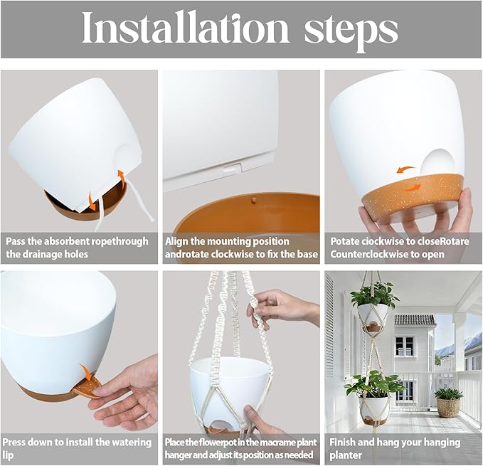 - 【Self-Watering Functionality for Extended Plant Care】High-quality PP plastic plant pots with an absorbent rope are designed to keep your indoor plants hydrated for extended periods. The excess water is stored in the bottom of the pot, allowing plants to absorb it through the rope or their roots. This system ensures your plants stay hydrated for a week or longer, even when you're away from home