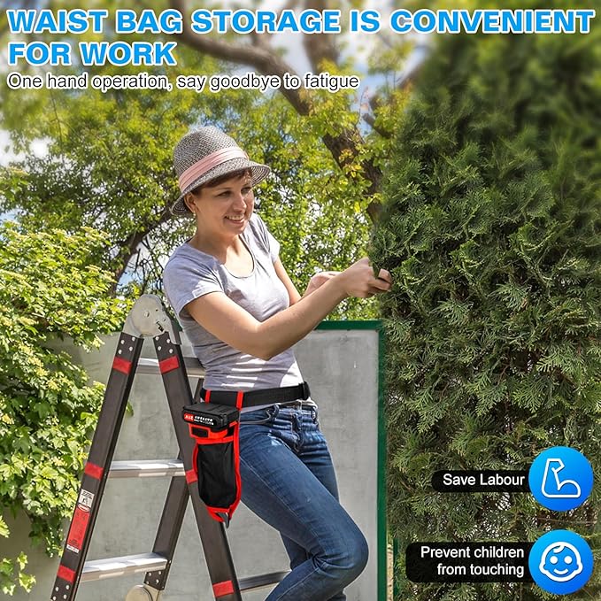 - 【Gardening tools】 Our electric trimmers will revolutionize the way you prune without noisy chain saws or tiring scissors, more efficient and labor-saving than traditional manual trimmers, can greatly improve work efficiency suitable for young or old, female or male use