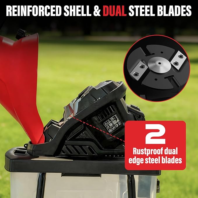 - Superior 15:1 Reduction Ratio: Designed with dual feed chutes — a large main inlet and a smaller side inlet — and a 10-gallon collection bin, this leaf mulcher shredder transforms piles of leaves and branches into nutrient-rich mulch, keeping your garden neat and well-maintained.