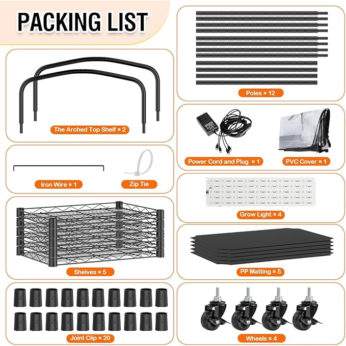 - Compact Indoor Greenhouse Kit with Full Accessories: This mini greenhouse indoor measures just 16.5" x 11.4" x 56.3", making it perfect for tight spaces. The 5 tier greenhouse includes a metal plant stand with wheels, shelf liners, a durable PVC cover, and full-spectrum grow lights with timer. It's a compact, all-in-one solution for year-round growing indoors