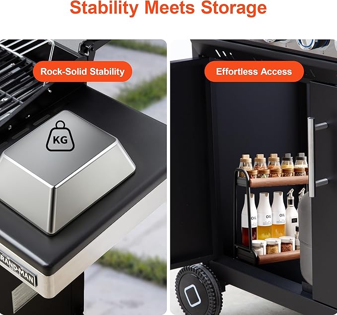 - Premium Construction: Heavy-Duty, durable materials ensures long-lasting performance. Robust design provides years of reliable outdoor cooking. Features heavy-duty double-layer lids with heat-resistant handles for enhanced safety and durability