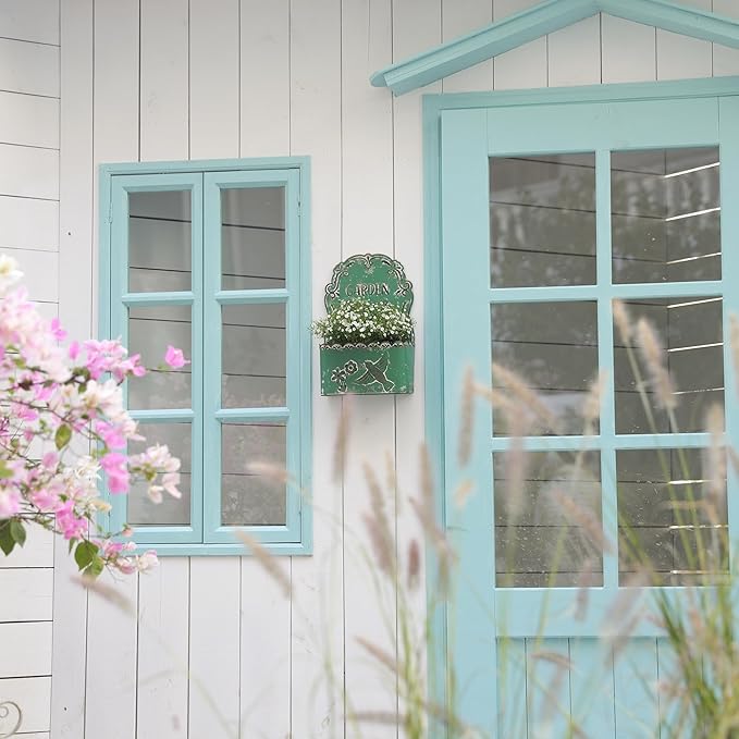 BIG FORTUNE Metal Wall Mount Planter Wall Vases for Flowers Shabby Chic Decor for Rustic Farmhouse Outdoor Decor (DarkGreen)