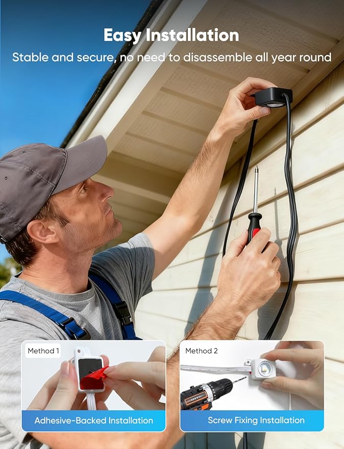 - High Brightness and Shockproof - This newly upgraded Permanent Christmas Outdoor Light delivers 40lm of brightness per light, featuring more vibrant LED beads and a wider illumination range. You can also adjust the light’s color and brightness to your liking, effortlessly creating a magical Christmas atmosphere for your home.